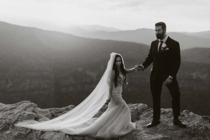 Are you looking for Elopement Photography in Asheville that includes Drone? Check out these post sunset shots from the air on the edge of the mountain in the Linville Gorge Wilderness!